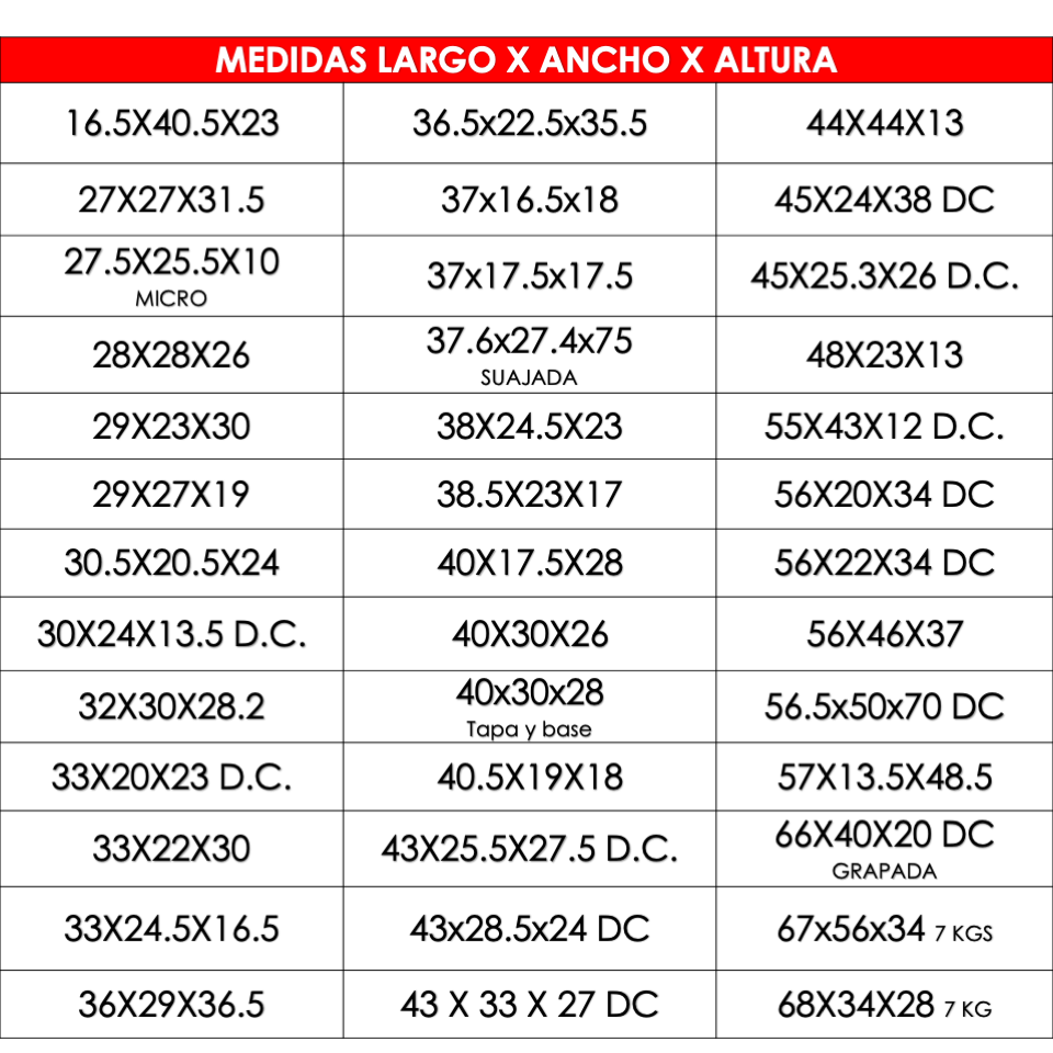 Llama a nuestro centro de distribución ubicado en Naucalpan 5359 2939 para preguntar por las medidas disponibles.